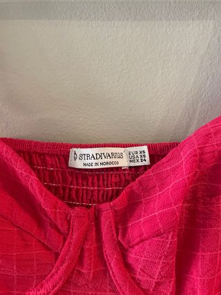 Vestido midi de Stradivarius en un color rosa fucsia super favorecedor. Tiene un diseño de estilo corsetero en el pecho que realza mucho la figura y tirantes finos. Tirantes ajustables. El tejido tiene una textura de micro-cuadros muy original que le da cuerpo y evita que se arrugue fácilmente. Perfecto para eventos, cenas de verano o un look casual con sandalias o zapatillas.