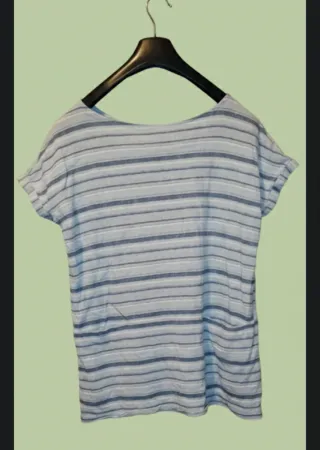 vestido corto de lino , ideal para el verano y días de playa. Tiene un diseño de rayas horizontales en tonos azul denim y blanco roto que le da un aire marinero y relajado. Lo más especial de esta prenda son sus bolsillos delanteros que mantienen la continuidad del patrón de rayas, dándole un toque moderno y práctico. Es de corte recto, muy cómodo y fresco. Estilo: Casual / Boho / Playero. Detalles: Cuello barco, manga corta integrada (tipo japonesa) y bolsillos. Tejido: Lino de alta calidad, transpirable y ligero.