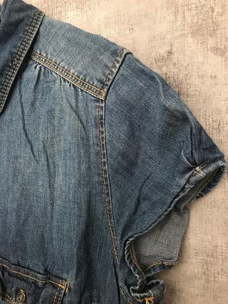 Vestido estilo camisero de tejido vaquero. Ideal para un look casual. - Cuello camisero. - Cierre de botones. - Dos bolsillos en el pecho. - Manga corta. Si quieres conocer las medidas exactas, escríbeme y con gusto te las facilito. No acepto devoluciones por talla, ya que las medidas pueden variar según la marca.