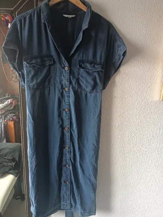 Vestido estilo camisero de Springfield, perfecto para un look casual. - Diseño vaquero. - Cuello camisero. - Cierre de botones. - Dos bolsillos en el pecho. Si quieres conocer las medidas exactas, escríbeme y con gusto te las facilito. No acepto devoluciones por talla, ya que las medidas pueden variar según la marca.