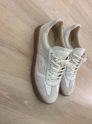 Zapatillas Munich de estilo deportivo y casual, ideales para fútbol sala o para vestir. - Diseño en blanco y azul. - Suela de goma marrón. - Detalle de color verde en el lateral Las vendo porque me las regalaron y se equivocaron de talla y para cuando quise devolverlas se habia pasado la fecha de devolucion. Estan en perfecto estado nuevas de la tienda.