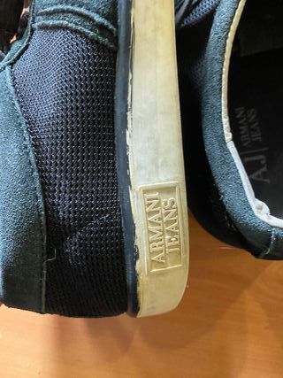 Espectaculares deportivas de la firma Armani Jeans en la talla 42. Un modelo icónico que combina ante y tejido técnico en color azul marino oscuro.Detalles destacados: Suela: Diseño exclusivo con el logo de Armani Jeans grabado en toda la planta. Material: Ante de alta calidad y malla transpirable. Estado: Muy buen estado general. La suela apenas tiene desgaste y el tejido está impecable. Estilo: Calzado casual de lujo, perfecto para vestir con vaqueros o chinos. Se entregan limpias. 100% originales. Una oportunidad para tener unas Armani a precio de outlet.
