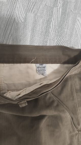 Pantalón Apache – Talla 60 – Color marrón Vendo pantalón de la marca Apache, en talla 60, color marrón. Es un pantalón cómodo, resistente y de estilo clásico, ideal para uso diario o para vestir casual. El tejido es suave y duradero, con bolsillos traseros con cierre de botón y un corte recto tradicional. 📌 Características del pantalón: Marca: Apache Talla: 60 Color: Marrón Corte: Recto Bolsillos traseros con botón Cintura con trabillas Tejido resistente y cómodo Cremallera y botón frontal