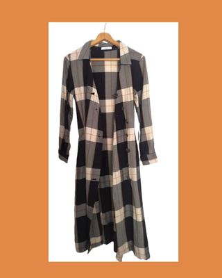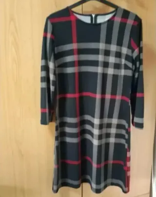 Vestido estilo camisa con un diseño de cuadros. Precio negociable. - Diseño largo hasta la rodilla. - Cuello camisero. - Cierre de botones.