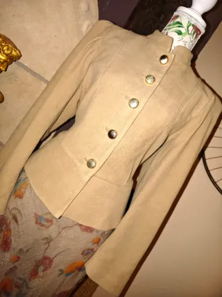 ✨ Chaqueta estilo militar efecto ante – Nueva con etiqueta ✨ Elegante, sofisticada y con mucha personalidad. Una prenda que transforma cualquier look en algo especial. 🤍 🧥 **Chaqueta efecto ante de ** 📏 Talla L 🏷 Nueva con etiqueta 🎖 Estilo militar con preciosos botones dorados 🤍 Color beige muy fácil de combinar ✨ Tejido suave efecto ante, muy elegante Ideal para llevar con jeans, vestidos o pantalones de vestir. Perfecta para entretiempo y para dar un toque chic a cualquier conjunto. 🌟 💌 En perfecto estado, sin usar. Si te gusta el estilo elegante con carácter… ¡esta chaqueta te va a enamorar! 💫