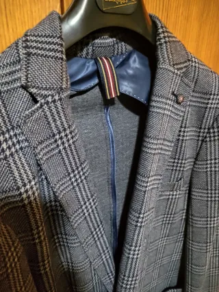 Chaqueta clásica de la sastrería de Cortefiel en talla XL, ver medidas en fotos (Mido 185 y peso 90kg). Corte y estilo clásico: cierre con dos botones en línea, bolsillos con solapa, botones en la bocamanga y dos aberturas traseras. Tela de pequeños cuadros en tonos verdes y azules. Una excelente americana perfecta para vestir o sport, ideal para verano, muy ponible. Excelente estado, usada en un par de ocasiones como mucho, sin signos de uso. Conservo la bolsita con el botón de repuesto.
