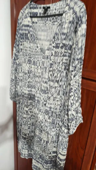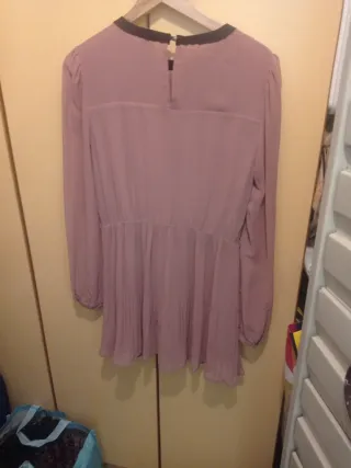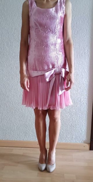Precioso vestido estilo Charleston, NUEVO a estrenar. ✨ Falda plisada con forro interior, que aporta movimiento. ✨ Tejido vaporoso tipo gasa, muy cómodo y ligero ✨ Corte cruzado con escote en pico, sienta genial. ✨ Detalle fruncido en cintura elástica que estiliza muchísimo. ✨ Lazo largo incluido, para anudar en la espalda o lateral ✨ Manga tres cuartos con detalles en raso en los hombros, un toque chic. 📏 Talla 38 – Equivalente a una S/M 📍 Entrego en mano en Alicante ciudad, Playa de San Juan (PAU5) o Benidorm. 📦 También hago envíos (Vinted lo pone fácil). 📲 Mira también mis otros artículos para ahorrar en el envío.