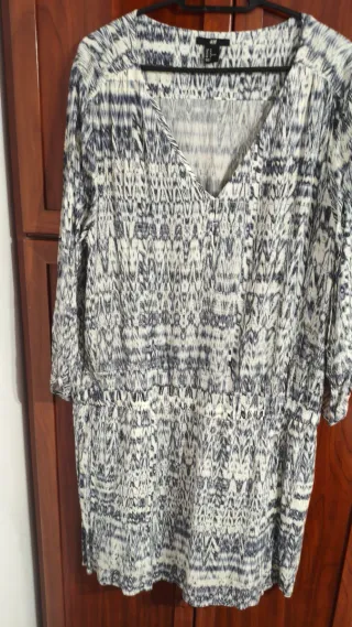 Vendo Vestido de Cotton Licra Elástico 💯%. Marrón chocolate. Tela suave y ligera, con manga larga, satinado la parte final de la manga. Es Bello y Elegante, con cuello alto satinado,( Como en foto) y manga larga, medida: largo 64. Estilo Charlestón!( al final del vestido es faralado). Talla 42/ medidas: largo 84/ hombro 45 / Sisa 43/ ancho cintura 36/ cadera 46/ todas estas medidas son relativas, es Elástico 💯%. Se puede usar como vestido, con pantalón, con falda, como te sientas bien, (creatividad). Nuevo sin etiqueta. 22 EUR.