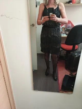 Vestido estilo charleston, muy muy bonito y una puesta ,el color es genial