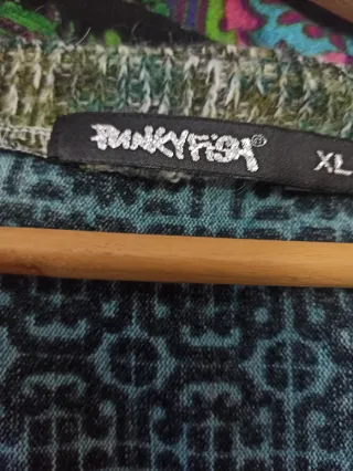 Vestido nuevo con un diseño vibrante y colorido, perfecto para añadir un toque de estilo. Con clara inspiración en Desigual, sobre fondo negro hay un estampado con mucha personalidad. Es una talla l. Si quieres probártelo, podemos quedar en una tienda y te lo ves puesto. Medidas: 49,5 cm sisa y 93 cm alto. - Manga larga. - Cuello en V. - Estampado llamativo con motivos circulares y florales.
