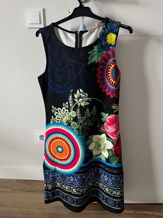 Vestido con un estampado vibrante y colorido característico de la marca Desigual. - Diseño sin mangas. - Cremallera trasera. - Largo hasta la rodilla.
