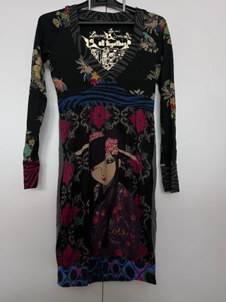 Vendo este vestido original de la colaboración de Desigual con el artista Javier Mariscal, una pieza muy buscada por su diseño artístico y singular. Confeccionado en tejido plisado elástico, se adapta perfectamente al cuerpo y estiliza muchísimo. 👗 Características: • Talla: S • Diseño: estampado icónico de rostros estilo Mariscal • Colores: negro con trazos blancos y detalles en color (rosa, verde, azul, rojo) • Corte: manga larga, falda con vuelo y cuello ligeramente alto • Estado: impecable, muy poco uso • Etiqueta Mariscal original (ver fotos) ✨ Ideal para quien busca una prenda única, de colección y con un toque artístic