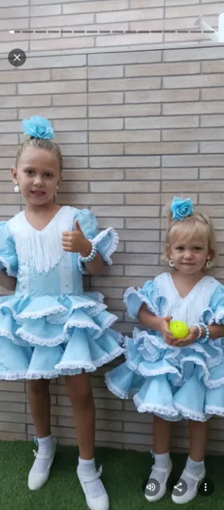 Traje de flamenca de mujer – elegante y muy estiloso. Precioso traje de flamenca para mujer, muy favorecedor y con muchísimo estilo, en estado impecable, prácticamente a estrenar. Confeccionado en crespón de gran calidad, una tela con caída muy bonita que realza el movimiento del traje. Combina azul marino con celeste, una combinación elegante, luminosa y muy flamenca. Es un traje hecho por modista, con buenos acabados y un diseño con mucha clase. Medidas aproximadas: • Talla: 36–38 • Largo (de hombro a bajo): 150 cm • Referencia de altura: yo mido 1,68 m • El cuerpo tiene tela para sacar, se puede ajustar.