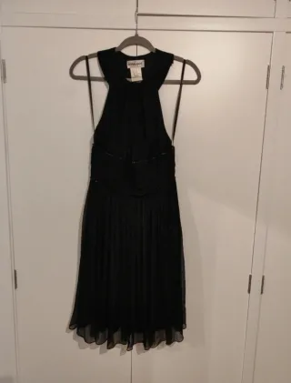 Vestido de fiesta corto negro de estilo griego con pedrería en la cintura y con forro. El tejido es ligeramente satinado. Tiene una caída espectacular. Se ajusta muy bien en la cintura. La espalda hace un dibujo precioso. Usado una vez para una graduación. Le faltan algunas piedrecitas en un lateral. Del resto está impecable. Es una M justa. La zona del fajín de debajo del pecho tiene una medida de 40 cm de ancho y de largo mide 1 metro. Precio original: 190€. #vestidograduacion #vestidocortomujer #vestidonochevieja #vestidofindeaño #vestidobodabautizoycomunion #vestidofiestacorto #partydress #weddingdressguest