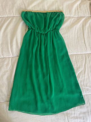 Vendo vestido estilo griego, plisado, vaporoso con forro. Se puede ajustar a la cintura con unos lazos laterales.Vestido versatil con complementos dorados es muy elegante.El color es diferente que en la foto. Color verde césped, musgo...más vivo.