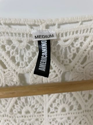 Color blanco, Talla M, con detalles en la espalda de guipur. Estilo ibicenco, muy bonito.