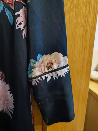 Vestido de Zara con un estampado floral estilo Oriental. Tiene 2 puestas. - Diseño con escote en V. - Cierre de botones en la parte delantera. - Mangas largas.
