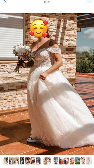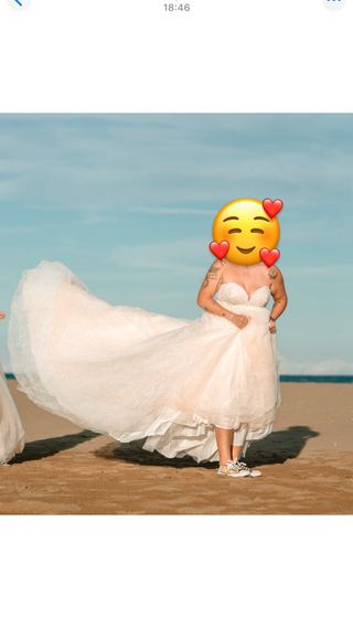 Elegante vestido de novia estilo princesa de la marca LadyBird 2024 Talla 34-36 (está a medida) Para tener una idea, de las dimensiones del vestido, la novia pesa 59 kilos y mide 1,72cm (usado con zapatos planos) Precio original del vestido 1200€ De regalo el cancán valorado en 70€ El vestido no se ha llevado a la tintorería, está lavado a mano, por lo que tiene manchas en la parte de abajo que salen en la tintorería. Tiene una pequeña parte descosida por la parte de dentro que no se ve Para más fotos o dudas preguntar sin compromiso. Precio no negociable