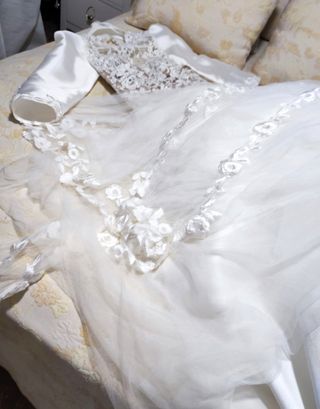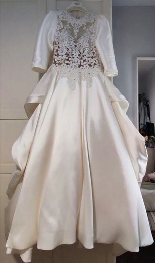 Preciosa vestido de novia estilo princesa, prácticamente nuevo. - Talla: (cintura hasta 70 cm) - Diseño elegante y sofisticado. - Confeccionado en satén brillante. - Adornado con delicados detalles de pedrería. - Se compró de Manchester por 900€. - Con opción de alquiler también. - Viene con el velo repleto de perlas y accesorios como corona . - Viene con los metales del cancán si os interesa no dudéis en escribirme para mandaros videos!