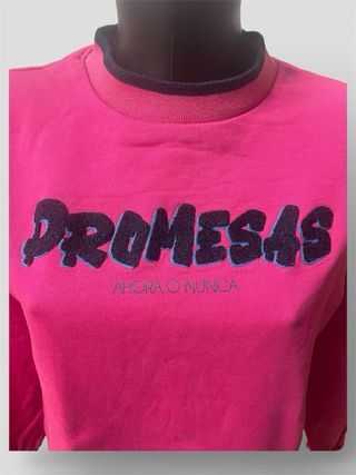 Prenda de Anabel Lee con un diseño llamativo y juvenil. Ideal para añadir un toque de color y estilo. - Estampado frontal con ilustración. - Mensaje inspirador en español: Eres capaz, eres fuerte, eres más que suficiente. - Combinación de colores vibrantes: rosa, amarillo y morado.