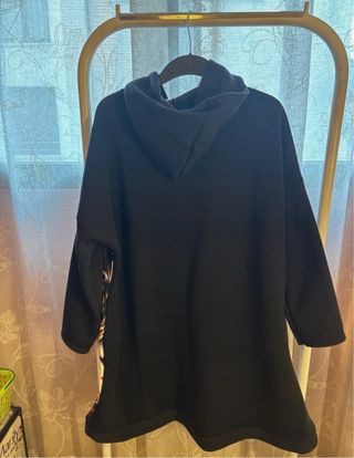 Sudadera estilo vestido, perfecta para un look deportivo y casual. Su diseño moderno la hace ideal para el día a día. - Detalle de rayas en las mangas. - Capucha con cordones. - Tejido suave y cómodo. Cualquier duda con las medidas puedes contactarme.