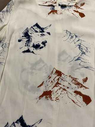 Vestido estilo túnica con un bonito estampado de montañas. - Diseño de manga codo - Bolsillos delanteros. - Cuello redondo. - Sin uso