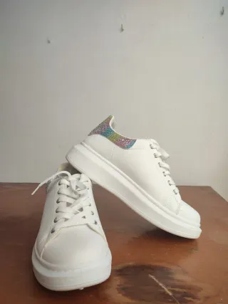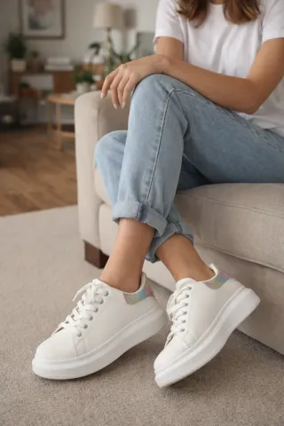 Zapatillas blancas con detalle iridiscente