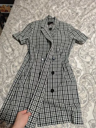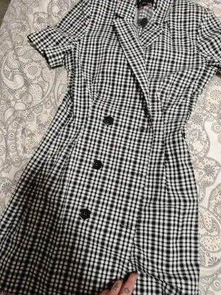 Vestido estilo blazer con estampado de cuadros. Está nuevo con la etiqueta, es corto y lleva un poco de hombreras - Diseño de doble botonadura. - Cuello solapa. - Manga corta.