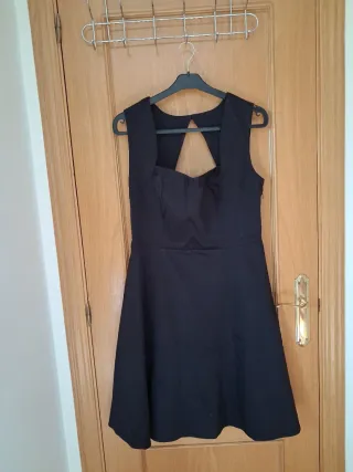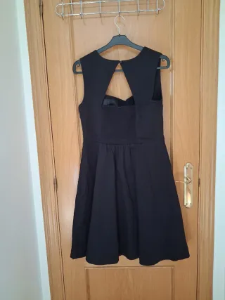 Elegante vestido corto en color negro intenso, con un corte clásico que favorece la silueta y un diseño de espalda muy especial. Estilo/corte: Cuerpo entallado con escote corazón y falda de vuelo con caída. Destaca por su espalda abierta con cierre de botón en la parte superior y cremallera invisible lateral. Sin mangas y con tirantes anchos.nido abeja en la espalda Talla: 44 Medidas aprox.: Largo 95 cm, Cintura 42 cm. Estado: Muy buen estado, usado únicamente en un evento. Sin manchas, roces ni decoloración. El tejido tiene cuerpo y es de gran calidad. #vestido #negro #fiesta #talla44 #elegante #blackdress #cocktail #partystyl