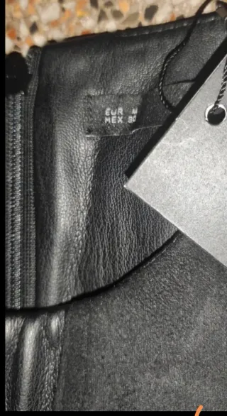 Vendo este precioso vestido negro que combina elegancia y un toque rebelde. Es ideal para una cena o un evento especial porque el diseño es muy favorecedor. material: efecto cuero (polipiel) de alta calidad, con paneles combinados. detalles: tira central con remaches metálicos decorativos y mangas cortas con un volante sutil. corte: estilo evasé (en "a") que sienta muy bien y es cómodo.