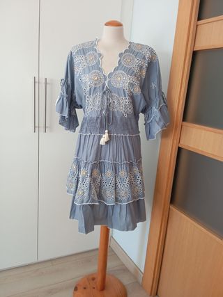Vestido azul bordado talla L
