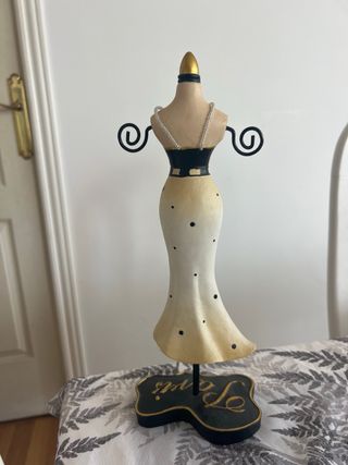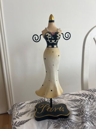 Original joyero con forma de maniquí, inspirado en el estilo parisino. Perfecto para organizar y exhibir tus joyas. - Diseño elegante de vestido. - Base decorativa con la palabra Paris.