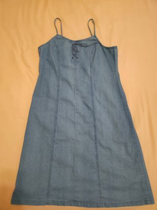 No se vende en persona. Solo por envíos wallapop Vestido de estilo tejano con tirantes para mujer. Presenta un diseño con cordones en la parte delantera. El tejido es elástico Ancho axilas 46cm Largo incluidos tirantes 100cm Largo desde el pecho 76cm Ancho parte de abajo 60cm - Tirantes finos. - Cierre de cordones en escote. - Costuras verticales.
