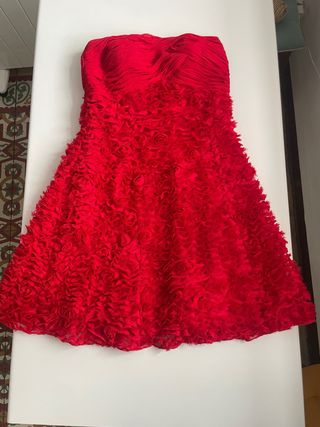 Vestido de fiesta sin tirantes con volantes. Usado 1 día,me costó 160€ - Diseño con múltiples capas de volantes. - Estilo strapless.