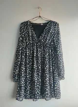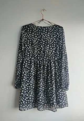 Vestido mini vaporoso con estampado de margaritas de manga larga de la marca H&M Divided. Lleva forro negro para que no se transparente nada. En perfecto estado. ⚠️La tela no es elástica, por lo que debes calcular las medidas para que te quede un poco holgado. Es muy bonito. Lo vendo porque no me queda. Talla S 📏medidas📏 Hombros: 39 cm Pecho: 45 cm Cinturilla (queda por debajo del pecho): 43 aprox. Largo: 82 cm estilo retro late 1960s, 1970s, 1990s coquette, boho, hippie, flower power, sixties, flores, floral, yeye, grunge, riot grrrl, yeyé, op art, groovy, soul, pop, go go, woodstok, psych rock, vintage, classic