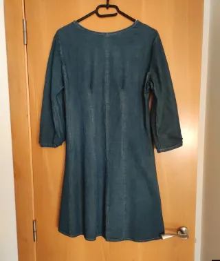 Vestido de estilo vaquero con un corte favorecedor. - Manga larga. - Cuello redondo. - Diseño con costuras verticales.