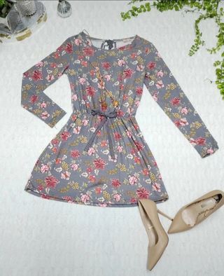 Vestido estampado floral en tonos rosa, fucsia y amarillo mostaza, ideal para añadir un toque de color a tu armario. Confeccionado para ofrecer comodidad y estilo, cuenta con un diseño que se ajusta delicadamente a la cintura mediante un cordón, realzando la figura de forma elegante. Su cuello redondo y la caída fluida de la falda lo hacen perfecto para diversas ocasiones, desde un día casual hasta un evento más arreglado. Combínalo con botas o zapatos planos para un look versátil y femenino. Es para mujer chica Talla S