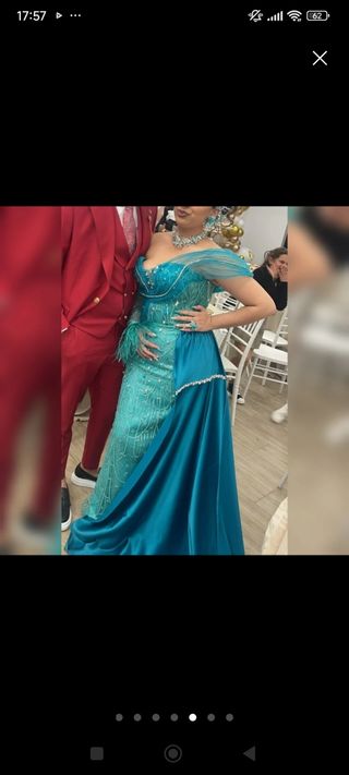 Precioso vestido de novia estilo gitano, ideal para una boda. Es un diseño único y elegante. - Talla: (A determinar por el comprador) - Confeccionado con materiales de alta calidad. - Diseño con pedrería y plumas. Vestido talla 36 color azul turquesa tiene para sacar y la espalda es del corset tiene para ajustar más o menos tiene capa y manga de quita y pon de plumas