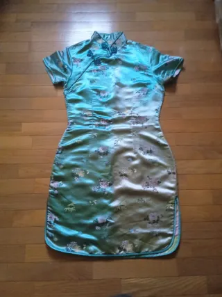 Vestido estilo asiático celeste floral