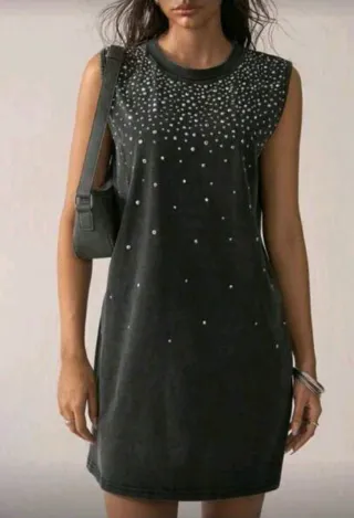 Vestido mini sin mangas con pedrería