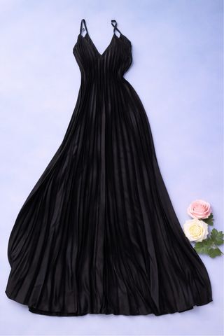 Elegante vestido largo con un diseño plisado y tirantes finos. Perfecto para ocasiones especiales. - Diseño plisado. - Tirantes ajustables. - Corte largo y fluido.