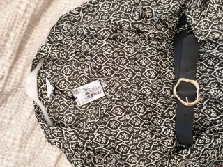Nuevo sin estrenar. Talla XS entallado. Tela ligera y vaporosa con doble tela estampada en interior de la zona de la falda y cruzada a la cintura con cinturón. Muy estilos ideal tanto para ocasiones formales como más casual.