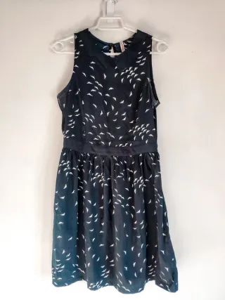 Detalles del producto: • Marca: Zara Woman. • Color: Camel / Beige oscuro. • Corte: Estilo skater con falda de tablas anchas que aporta mucho movimiento. • Detalles: Incluye charreteras (detalles militares) en los hombros con botón, dándole un toque estructurado y chic. Estado de la prenda: • Condición: Muy buen estado, poco uso. • Nota: En las fotos aparece algo arrugado por haber estado guardado en el armario, pero es un tejido de buena calidad y de muy fácil planchado. Una vez pasada la plancha, queda impecable y con mucho cuerpo.
