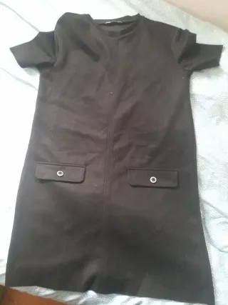 Vestido negro de Zara. Manga corta, estilo sencillo y elegante. Muy cómodo y fácil de combinar. En buen estado. Entrega en mano en Madrid. Precio negociable.