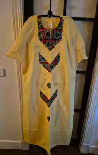 Vestido de estilo egipcio con un vibrante diseño. Comprado allí, en el Crucero del rio Nilo (usado para una cena del barco). Diseño bordado en el cuello y a lo largo del vestido. Mangas cortas. Raja en un lateral. Tejido ligero y cómodo. Talla M. Medidas en las fotografías. Más ropa, prendas de vestir.... moda y complementos de mujer.... bisutería... en mi perfil