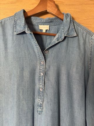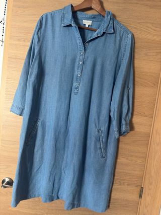 Vestido camisero de estilo vaquero. Es una prenda cómoda y versátil. - Manga 3/4. - Bolsillos laterales. - Cierre de botones.