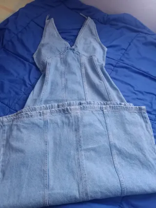Vestido vaquero de corte moderno y favorecedor. - Diseño con tirantes. - Largo hasta el tobillo. - Costuras marcadas para un estilo único. Tiene cremallera a un lado de la prenda, tal cual como figura en las fotos