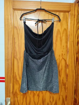 Vestido corto con acabado brillante, ideal para fin de año. Talla M de Shein, color negro con brillantes plateados, no suelta purpurina. Se amarra al cuello y deja la espalda al descubierto, es bastante corto. No se ha usado nunca, solo probado. Si necesitas mas información no dudes en preguntar 😊 Se recoge en La Herradura, Telde.