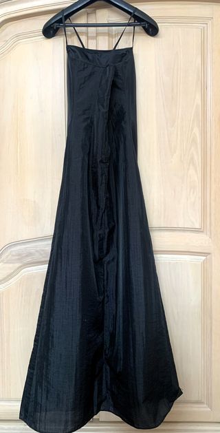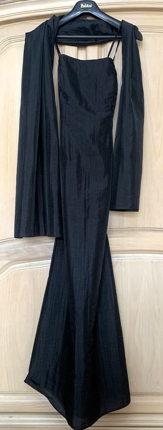 Vestido largo negro de la marca Bali, con caída elegante y acabado tipo seda, muy elegante y favorecedor. Diseño con tirantes finos cruzados en la espalda y cremallera trasera para un ajuste cómodo. Incluye chal de tela integrado sobre los hombros, que aporta un toque sofisticado y lo hace perfecto para eventos de noche, celebraciones, bodas, cenas o fiestas especiales. Un vestido atemporal que estiliza la figura y se adapta a distintas ocasiones durante todo el año. Solo fue usado 1 vez. En muy buen estado, listo para lucirse de nuevo 🖤✨
