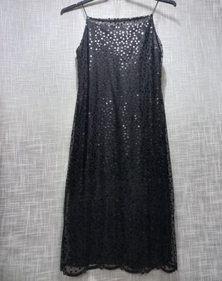 Vestido negro Zara fiesta pedrería lentejuelas XS